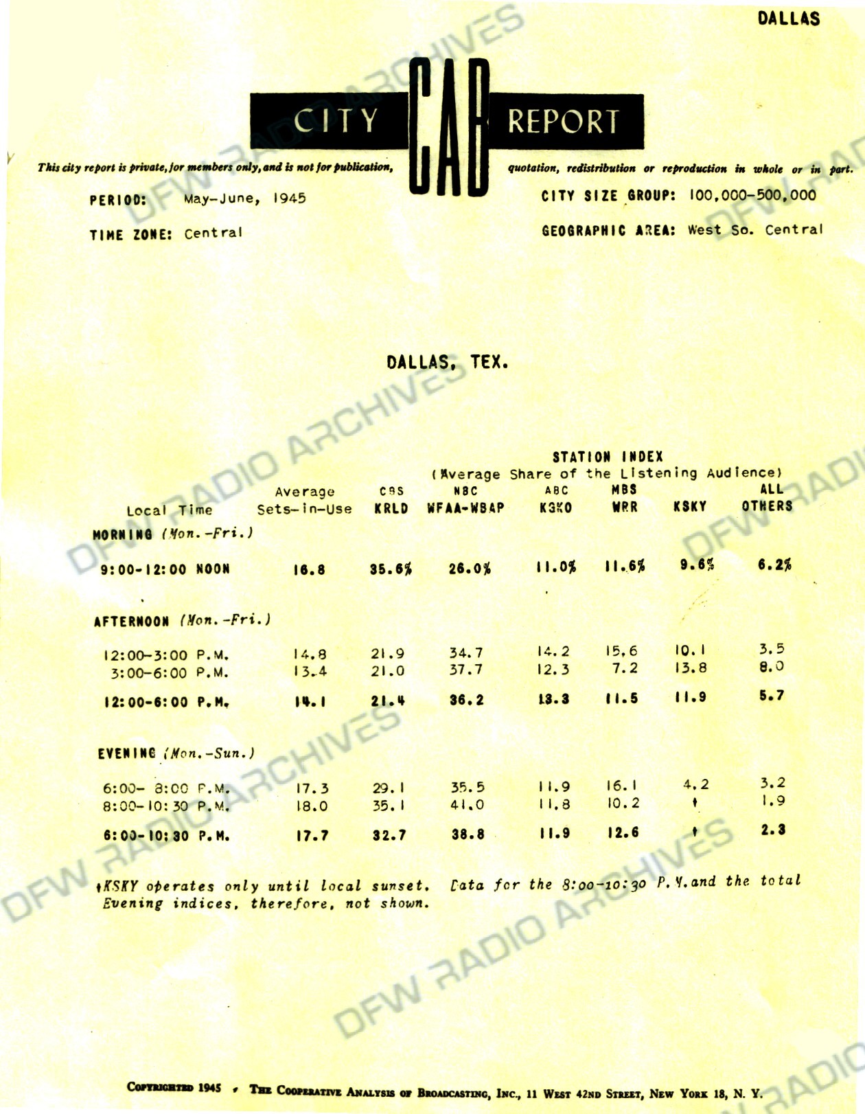 A DFWRadioArchives exclusive - radio ratings for Dallas from the 1930's and 40's!